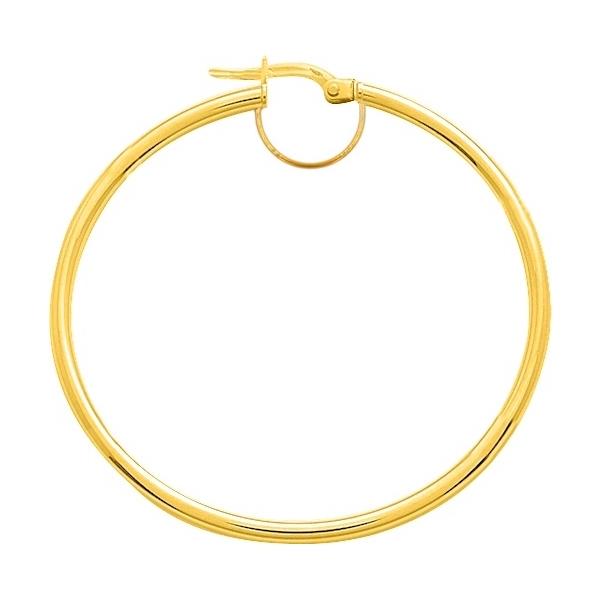 Créoles creuses et unies avec arceau de soutien en or jaune 375/1000 (9 carats), diamètre intérieur de la créole : 50 mm, fil rond creux de 2 mm de large. Vendues à la paire. Livraison France métropolitaine offerte. 9C2050