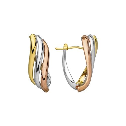 Boucles d'Oreilles Créoles Creuses Tricolores en or 375/1000 (9 carats), Fils Plats en Forme de Vague. Hauteur : 25.00 mm, Largeur 9.00 mm. Livraison France métropolitaine offerte. A66916