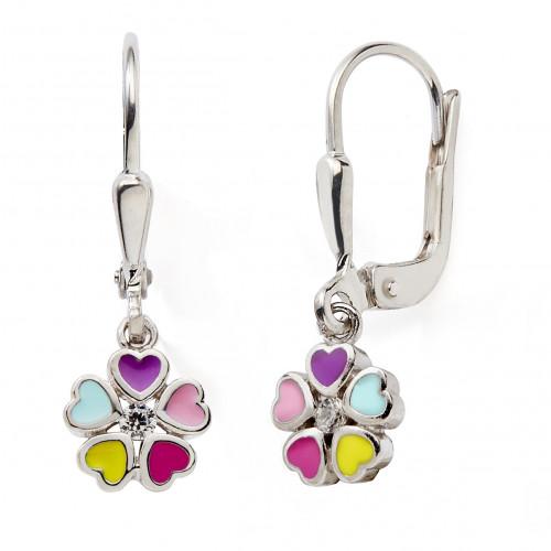 Dormeuses Argent Zircon Fleur Laque Multicolore - C3035