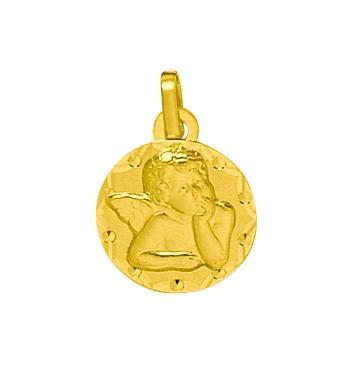 Médaille ronde Ange en Or Jaune Mat et Poli 750/1000 (or 18 carats).