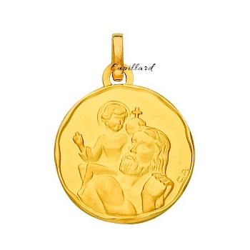 Médaille Saint Christophe ronde en or jaune 750/1000 (or 18 carats) mat et brillant.