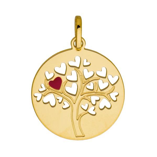 Pendentif Arbre de Vie Coeurs découpés en or jaune 375/1000 (9 carats) et laque rouge de 16 mm de diamètre. Livraison France métropolitaine offerte. A05718