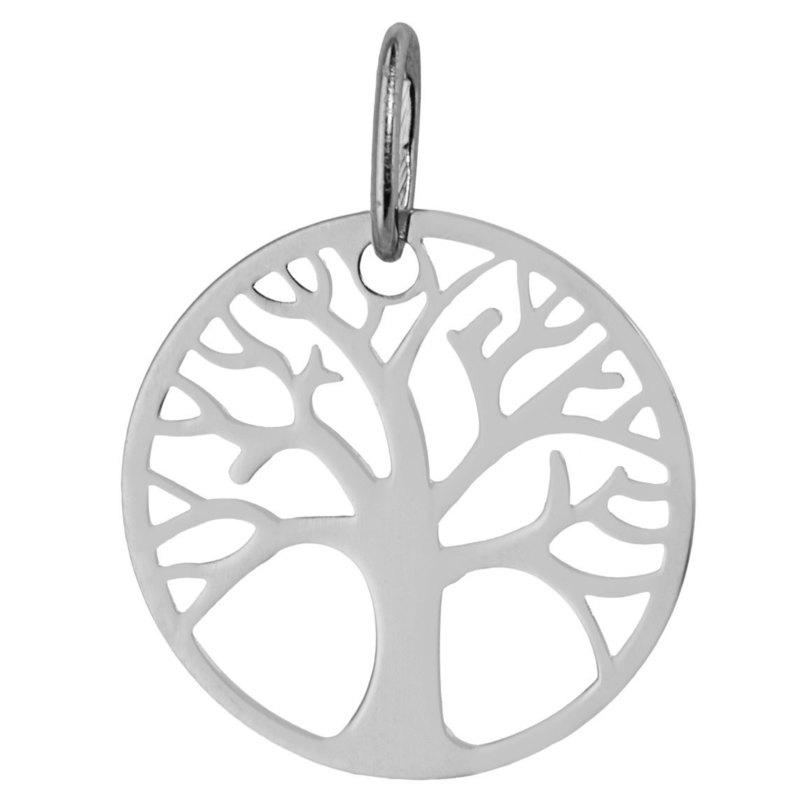 Médaille Arbre de Vie ajouré ronde en or gris rhodié750/1000 (18 carats) poli.