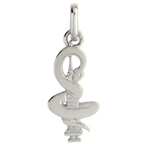 Pendentif Caducée infirmier(re) massif en or gris rhodié 375/1000 (9 carats).
