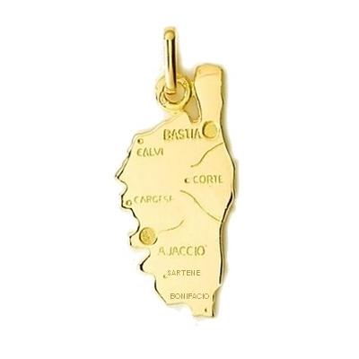 Pendentif carte de Corse modèle moyene en or jaune 750/1000 (18 carats) avec indication des villes et rivières.