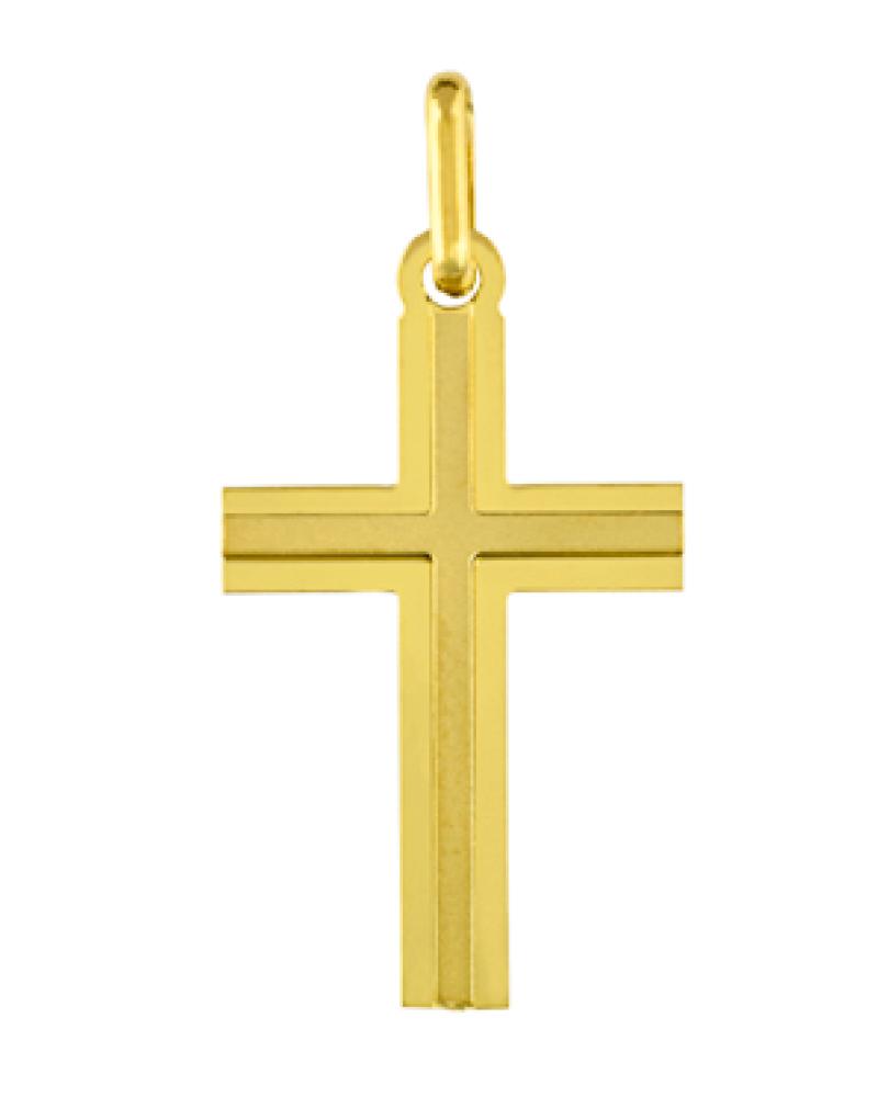 Pendentif Croix Lisse Et Satiné en Or 750 - A30619
