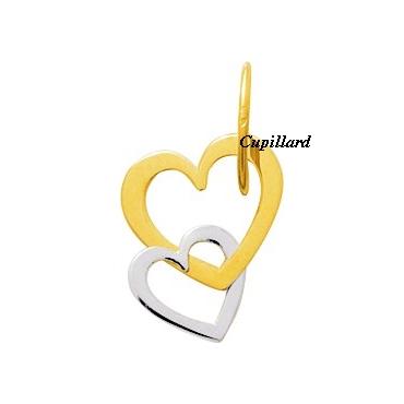 Pendentif Double Cœur En Or Jaune et en Or Gris Rhodié 375/1000 (9 carats), Hauteur 11 mm, Largeur 12 mm. Livraison France métropolitaine et Corse offerte. 662129