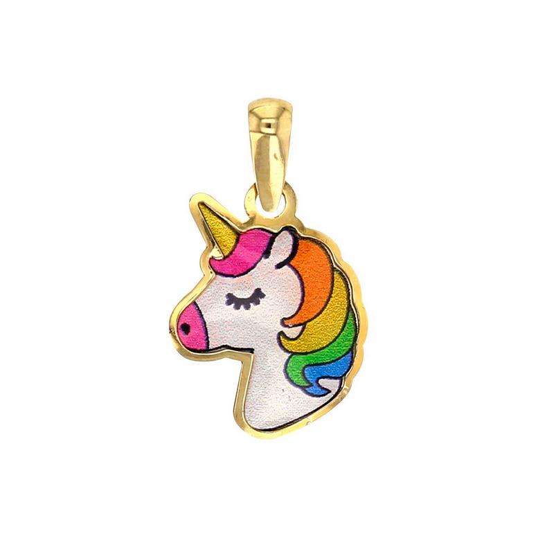 Pendentif Licorne avec de la laque multicolore en or jaune 375/1000 (9 carats).