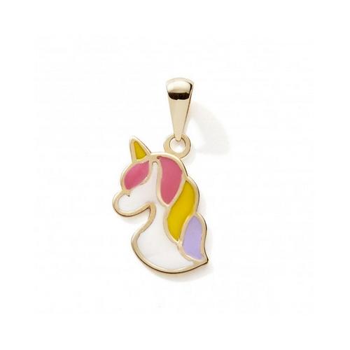 Pendentif Licorne en or jaune 375/1000 (9 carats) avec de la laque multicolore. N11367