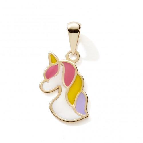 Pendentif Licorne avec de la laque multicolore en or jaune 750/1000 (18 carats).