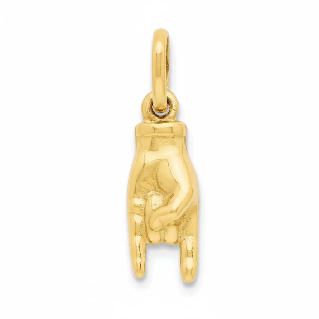 Pendentif main italienne porte bonheur creuse en or jaune 750/1000 (18 carats).