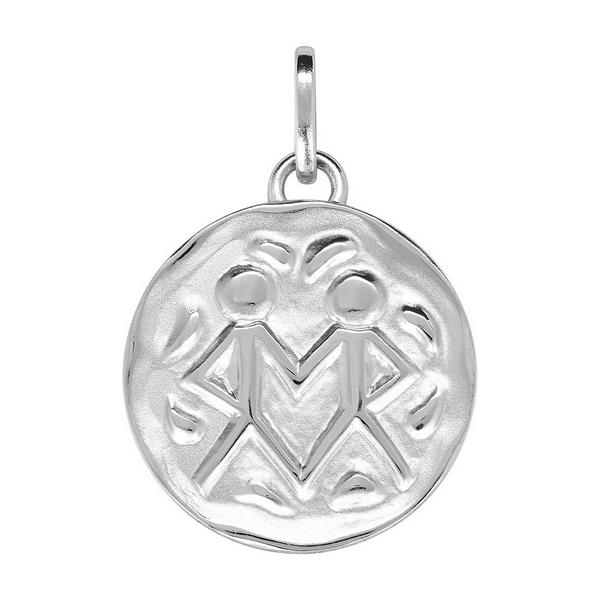 Pendentif zodiaque rond Gémeaux (21 mai au 21 juin) en argent 925/1000 rhodié poli et satiné. Diamètre 16 mm. Gravure possible. 336290.3