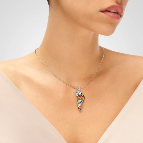Pendentif Una Storia Perroquet ligne Lovebird en argent 925/1000 rhodié émail multi-couleurs serti d'oxydes de zirconium. Largeur du perroquet 18,00 mm, Hauteur 38,00 mm Livraison France Métropolitaine et Corse offerte. BQ121212