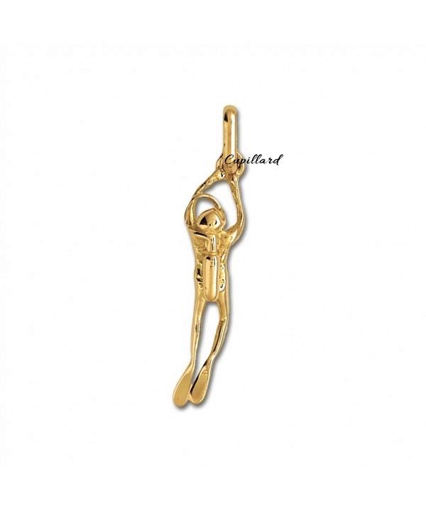 Pendentif plongeur en or jaune 375/1000 (9 carats) massif, Le cadeau parfait pour les passionnés de plongée sous marine.
