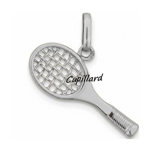 Pendentif raquette de tennis en or gris rhodié massif 750/1000 (18 carats) et en relief, Fabrication Française par Lucas Lucor Paris. Livraison France métropolitaine offerte P714-G