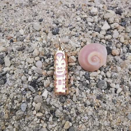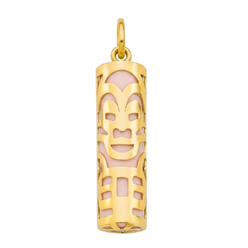 Pendentif tiki Amour en or jaune 750/1000 (18 carats) avec un tube en Corail Rose reconstitué, tiki amour taille 17 mm pour femme ou homme.