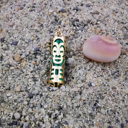 Pendentif tiki Amour en or jaune 750/1000 (18 carats) avec un tube en Malachite véritable, tiki amour taille 17 mm pour femme ou adolescent.