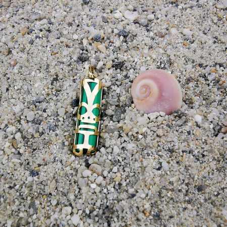 Pendentif tiki Chance 17 mm en or jaune 750/1000 (18 carats) avec un tube en Malachite véritable,