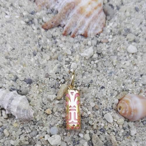 Pendentif tiki force 12 mm en or jaune 750/1000 (18 carats) avec un tube en Corail Rose reconstitué pour femme ou enfant,