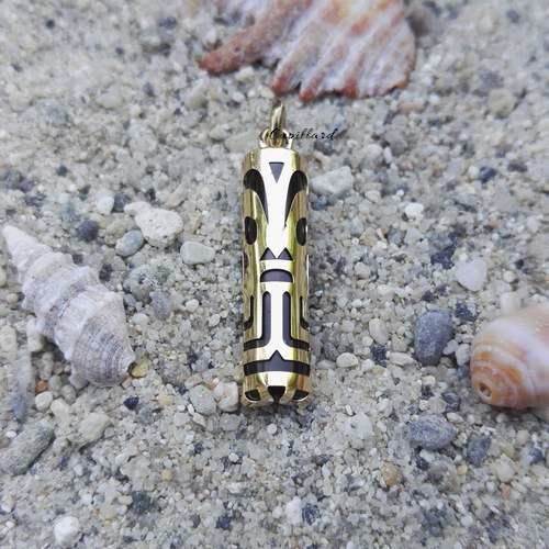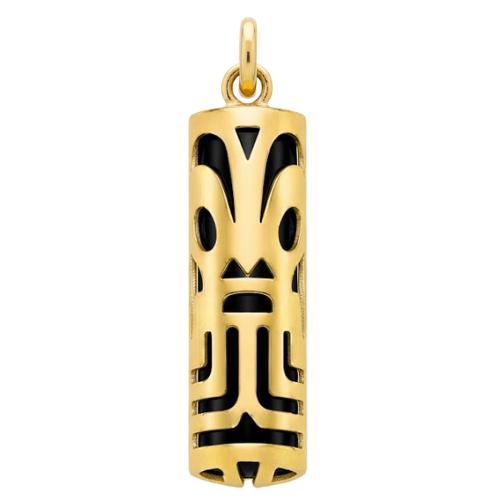 Pendentif tiki force 21 mm en or jaune 750/1000 (18 carats) avec un tube en onyx véritable pour femme et homme,