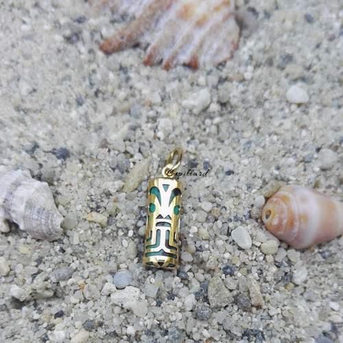 Pendentif tiki force 12 mm en or jaune 750/1000 (18 carats) avec un tube en Turquoise reconstituée pour femme ou enfant,