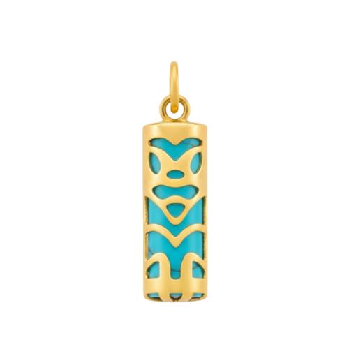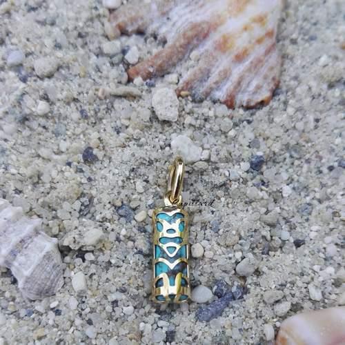 Pendentif tiki sagesse de 12 mm de haut en or jaune 750/1000 (18 carats) avec un tube en turquoise reconstituée pour femme et enfant,