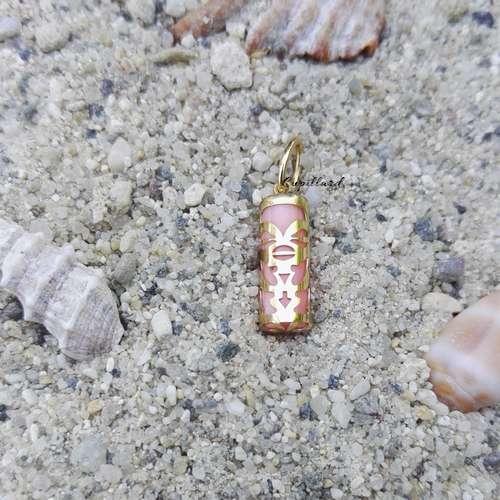 Pendentif tiki Tendresse de 12 mm de hauteur en or jaune 750/1000 (18 carats) avec un tube en corail rose reconstitué pour femme et enfant,