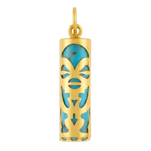 Pendentif tiki Tendresse 17 mm en or jaune 750/1000 (18 carats) avec un tube en turquoise reconstituée pour femme ou homme,