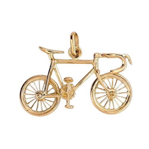 Pendentif vélo de route massif en or jaune 375/1000 (9 carats), Hauteur 19 mm et longueur 27 mm fabriqué en France par Lucas Lucor Paris. Livraison France métropolitaine offerte. XP1848
