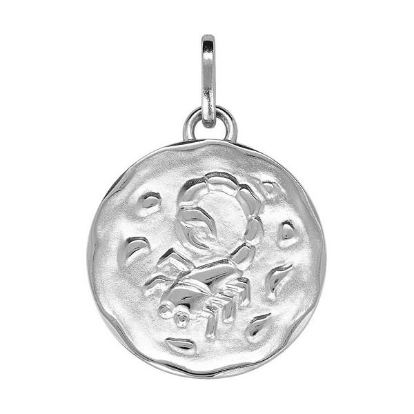Pendentif rond zodiaque Scorpion (24 octobre au 22 novembre) en argent 925/1000 rhodié poli et satiné.