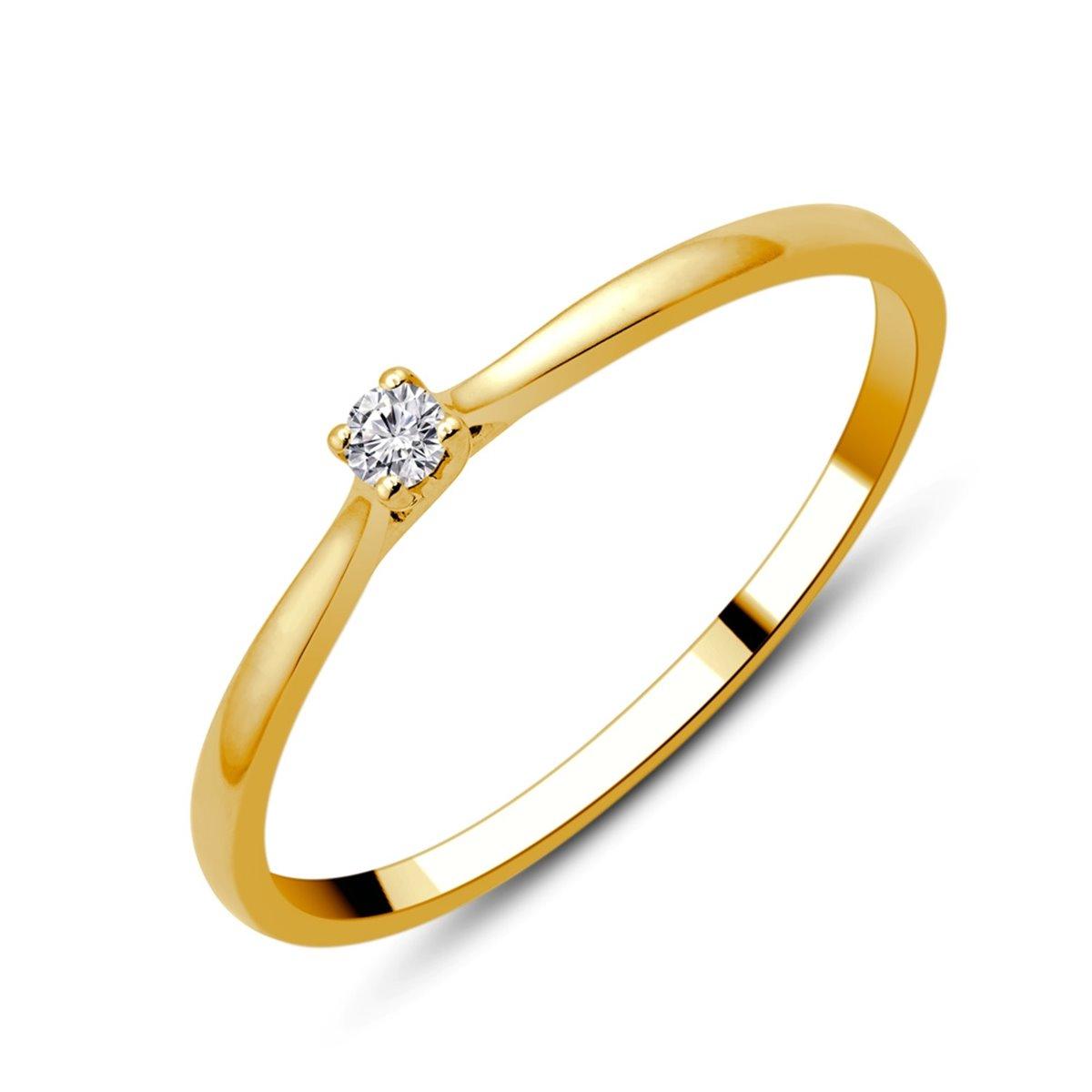 Bague de Fiançailles en Or Jaune 750/1000 (18 Carats), Solitaire Diamant Naturel Taille brillant Rond sur une Monture Classique Droite avec un Serti Quatre Griffes Croisées.