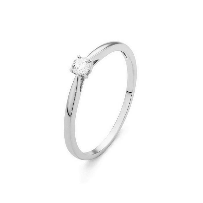 Bague or gris palladié rhodié 750/1000 (18 carats), solitaire diamant naturel taille brillant rond de 0.10 carat en qualité blanc H-SI serti sur une monture 4 griffes, Facet.