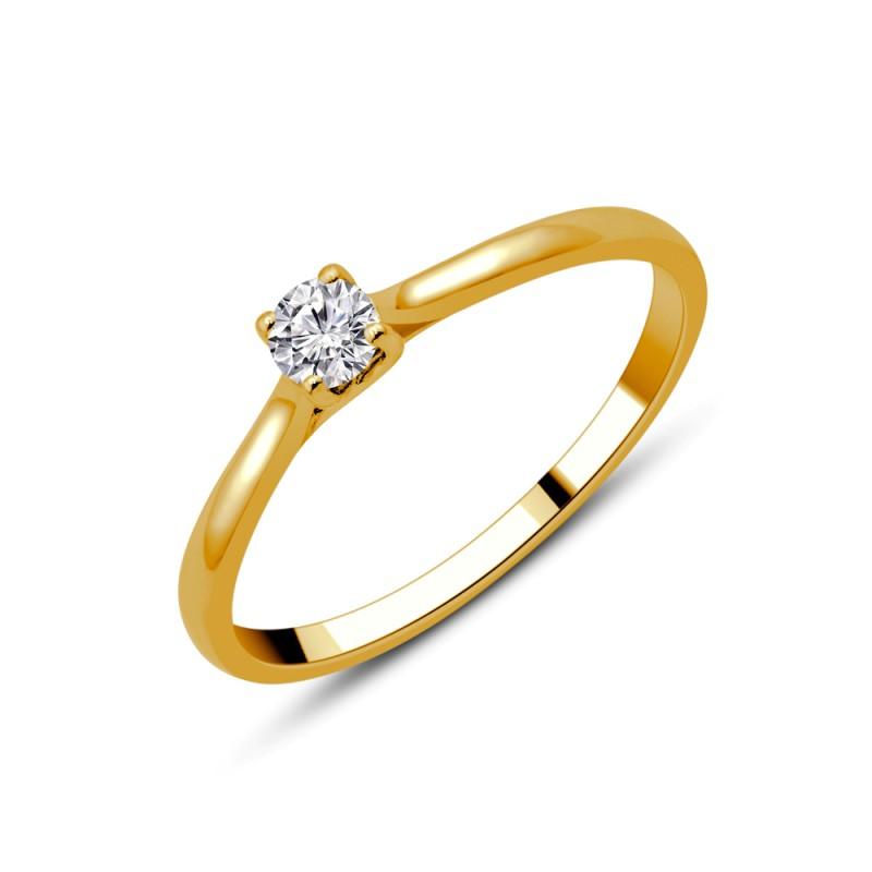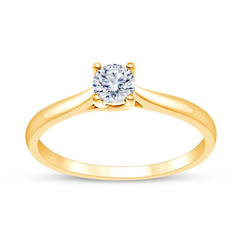 Bague de Fiançailles en Or Jaune 750/1000 (18 Carats), Solitaire Diamant Naturel Taille Brillant Rond Sur Une Monture Classique Droite avec un Serti Quatre griffes Croisées.