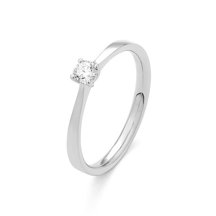 Bague femme Solitaire en or gris rhodié 750/1000 (18 carats), diamant naturel 0.30 carat en qualité H-SI serti sur une monture 4 griffes.