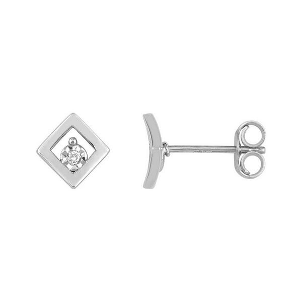 Boucles d'Oreilles Dame Losanges Incurvés en Or Gris Rhodié 750/1000 (18 carats) Solitaire Diamant Pastillé 0.02 Carat au total. Livraison France Métropolitaine Offerte. QE204GB4