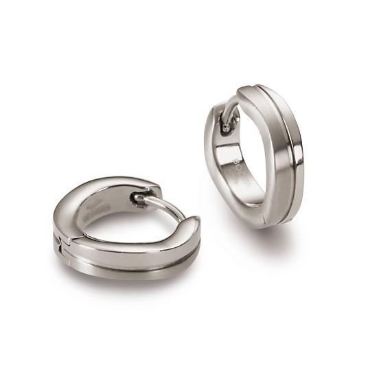 Boucles d'Oreilles Créoles Femme en Titane Mat et Brillant, Boccia Titanium.