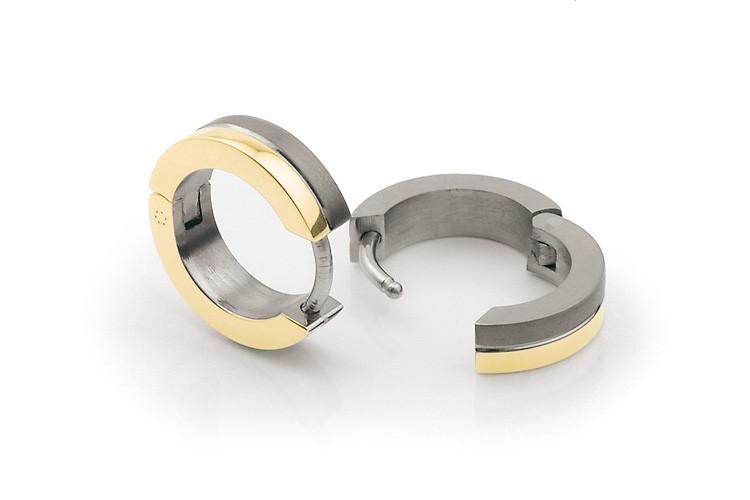 Boucles d'oreilles créoles en titane mat et plaqué-or jaune poli, Boccia Titanium anti allergique.