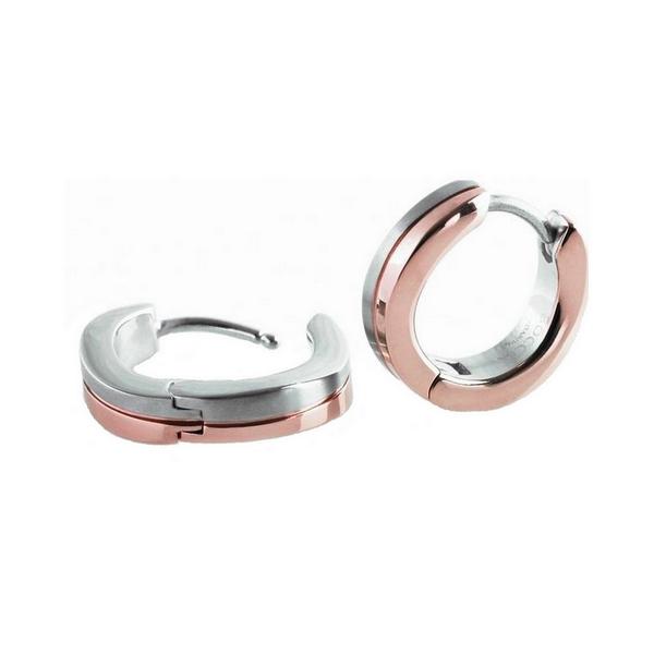 Boucles d'oreilles créoles titane mat et plaqué-or rose brillant, Boccia Titanium anti allergique.