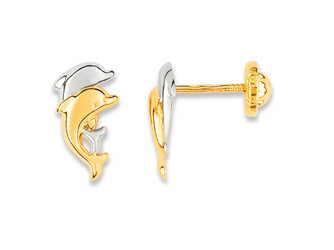 Boucles d'Oreilles à Vis Enfants Motifs Dauphins Or Bicolore 750/1000 (18 carats).