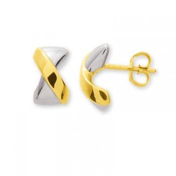 Boucles d'Oreilles Demi Créoles Croisée Bicolore Or 750 - 9555JG
