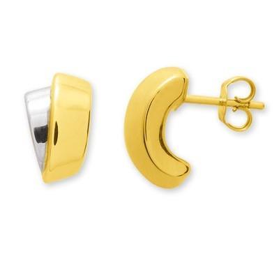 Boucles d'Oreilles Femme Demi Créoles Creuses Polies Bicolores en or jaune et or jaune rhodié 750/1000 (18 carats).