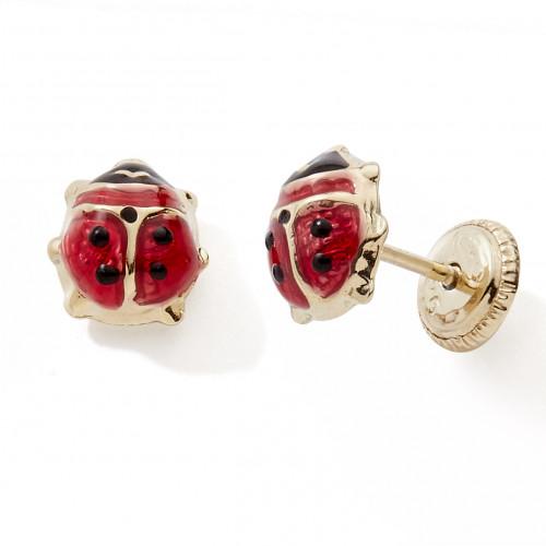Boucles d'Oreilles Coccinelles Laquées Rouges et Noires Grands Modèles Enfant Or Jaune 750/1000 (18 carats).