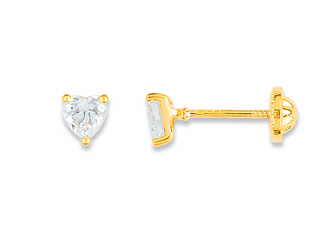 - Zircon blanc en forme de coeus serti sur une monture en or jaune 18 carats.