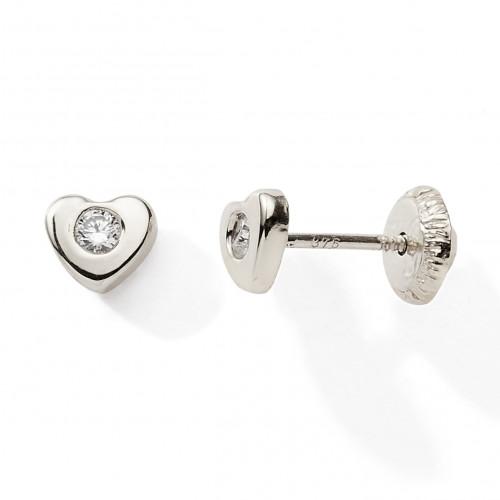 Boucles d'oreilles cœur en or gris rhodié 375/1000 (9 carats) serties d'un oxyde de zirconium rond.