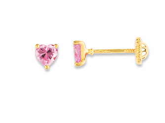 Boucles d'Oreilles pour Femme et Enfant en Or Jaune 750/1000 (18 carats), Zircon Rose en Forme de Cœur avec des Fermoirs qui se Vissent. Livraison France Métropolitaine et Corse Offerte. Bijouterie Cupillard Belfort : La plus Belle Collection de Boucles d'Oreilles avec Fermoirs à Vis. IK216JZRO