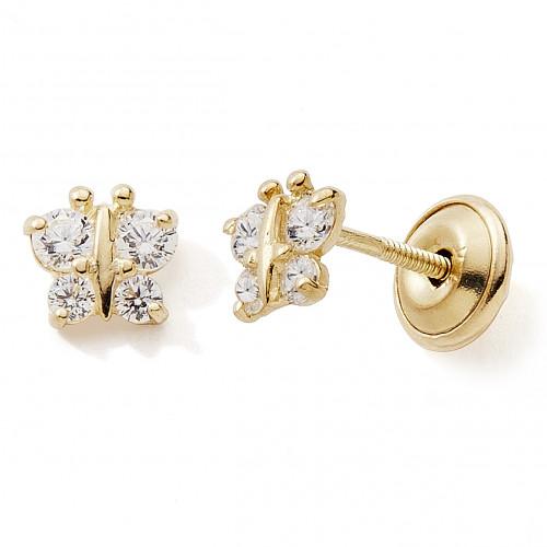 Boucles d'oreilles pour fille à motif papillon en or jaune 375/1000 (9 carats) et serties d'oxyde de zirconium,