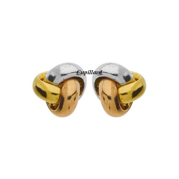 Boucles d'oreilles femme noeud fil demi jonc bombé en or jaune, or rose et gris rhodié 375/1000 (9 carats) poli,