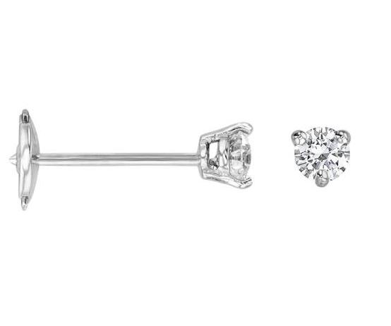 Boucles d'Oreilles Puces Diamants Naturels 2 x 0.075 Carat (soit 0.15 carat au total) Qualité H-SI Sertis 3 Griffes en Or Blanc Rhodié et Palladié 750/1000 (18 carats) Avec Fermoir Sécurité Style Alpa, Facet. Livraison Offerte en France Métropolitaine et en Corse. Bijouterie Cupillard Belfort : Revendeur Officiel de Bijoux en Or. E3263FMPWAY02