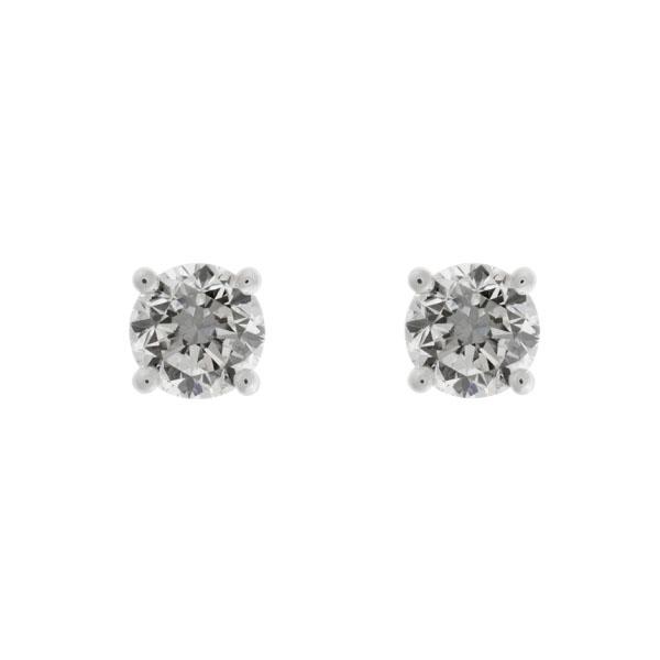 Boucles d'Oreilles Puces Zircon Sertis 4 Griffes Monture Or Gris Rhodié 750/1000 (18 Carats).