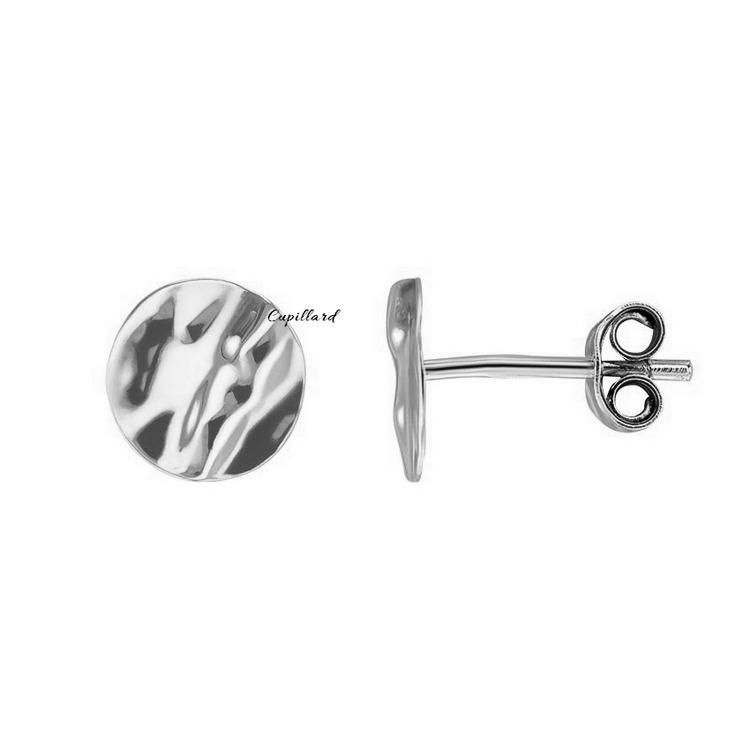 Boucles d'oreilles rondes froissées en or gris rhodié 375/1000 (9 carats) de 7,50 mm de diamètre. Scarlett Ballet. BE1012CNG00
